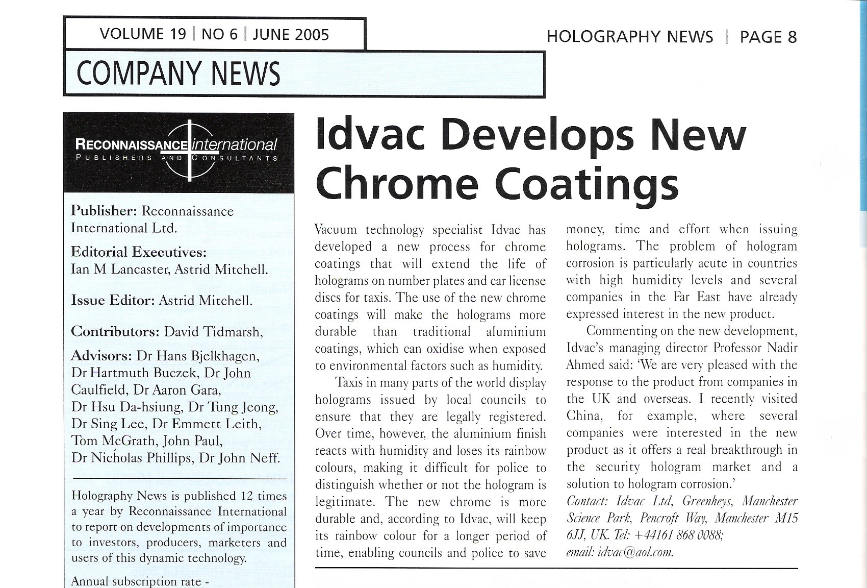 Idvac managing director, Professor Nadir Ahmed, is a regular speaker at Holopack / Holoprint and AWA annual conferences as well as other conferences worldwide