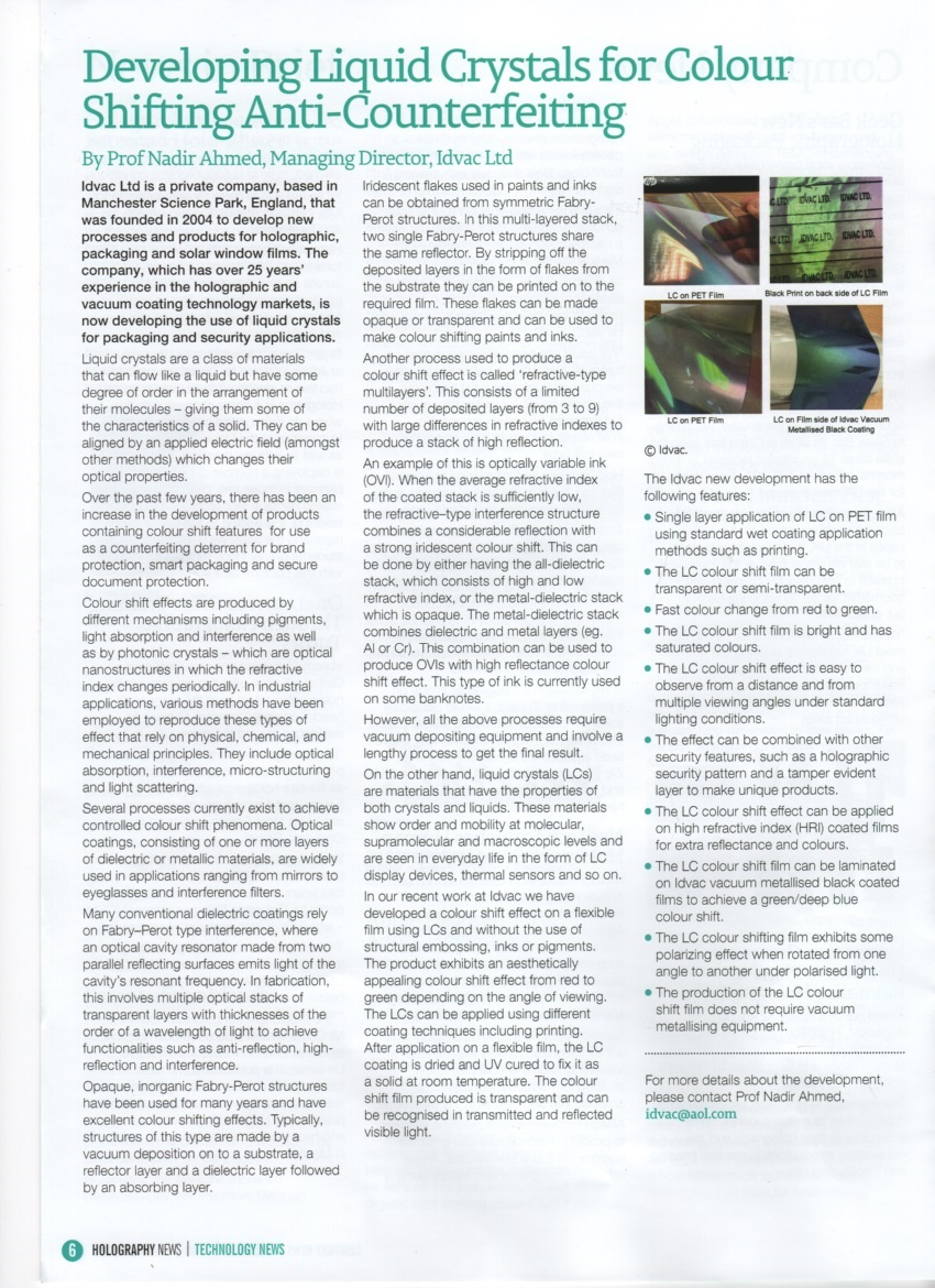 These articles highlight our innovations in vacuum coating processes for security holograms,